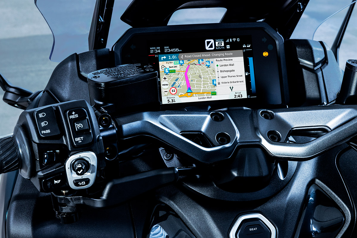 Equipada con un motor de 562 cc que cumple con la normativa EURO5, la TMAX Tech Max ofrece una experiencia de conducción deportiva y eficiente.